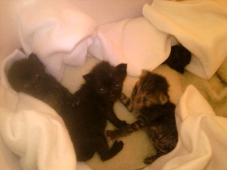 Od tygodnia są u mnie 4 maleńkie miauczydła. Przywiozłam je z Koziegłów, po tym jak ich matkę przejechał samochód.