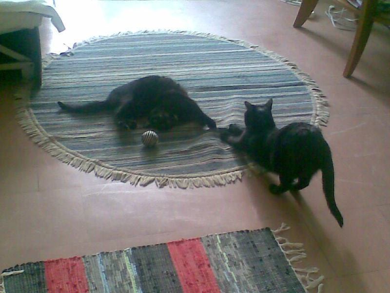 dość późnym wieczorkiem kociaki wyszły razem zwiedzać, edi robił to wcześniej sam, jadły i dawały się głaskać, tulić hehehe no i edi jest rzeczywiście bardziej odważniejszy.... poszłam spać, a kotki buszowały dalej