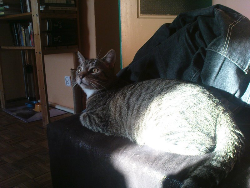 Jego ulubione zajęcia, oprócz atakowania Gadusia to skakanie po mnie w łóżku